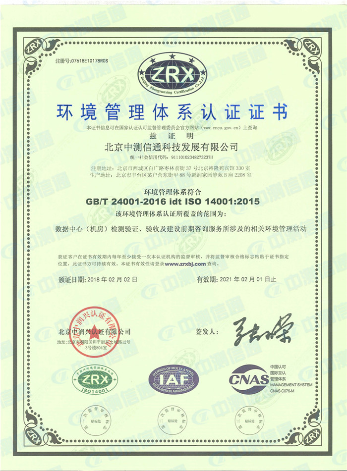 經(jīng)過公司全體員工2017年的籌備及CNAS、CMA的運行,我公司成功獲得數(shù)據(jù)中心第三方檢測機構的資質認可(CNAS認證及CMA認證),公司在數(shù)據(jù)中心驗證測試方面又邁出了堅實一步。