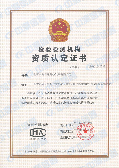 第三方檢測機構的資質認可申報的成功,標志著我公司的驗證測試及內(nèi)部管理水平又邁上了一個新的臺階。既是對公司技術人員的一種肯定和鼓勵,又是對提高公司管理工作的整體水平的推動和促進。北京中測將以此次認定為契機,進一步加大技術研發(fā)力度,努力提高自主創(chuàng)新能力。