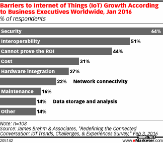 eMarketer:全球2/3的高管表示安全性是物聯(lián)網(wǎng)發(fā)展的最大阻礙