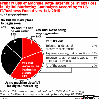 一般來說,營銷人員利用物聯(lián)網(wǎng)來追蹤和接觸消費者。2015年7月2nd Watch的調(diào)查發(fā)現(xiàn)近6/10的美國IT和業(yè)務(wù)高管表示他們曾利用物聯(lián)網(wǎng)進行網(wǎng)絡(luò)營銷。