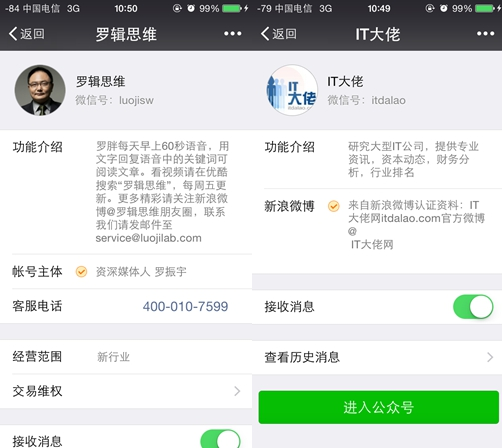 公眾號(hào)名稱是給人的第一印象,要讓大家第一次看到或者聽到的時(shí)候就可以記住或者有印象。比如:36氪、IT大佬、頂尖運(yùn)營。名字要么讓人感覺耳目一新,產(chǎn)生關(guān)注的好奇;要么名字直指要點(diǎn),讓大家一目了然。