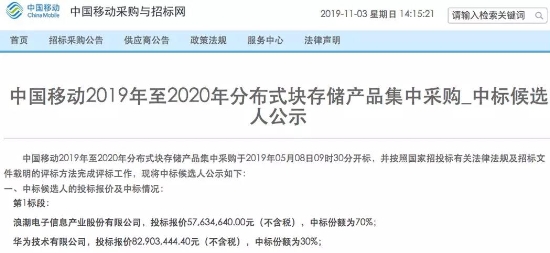 從2017年到2019年,中國移動連續(xù)進行了三次重要的分布式存儲項目集采,分布式存儲已經(jīng)成為了中國移動在業(yè)務(wù)創(chuàng)新與技術(shù)創(chuàng)新上的重要選擇。特別是在2019-2020年分布式塊存儲產(chǎn)品集中采購項目中,中國存儲廠商如浪潮、華為等多家供應(yīng)商入圍,其中浪潮成為了中國移動分布式塊存儲集中采購第一標(biāo)段的最大贏家。