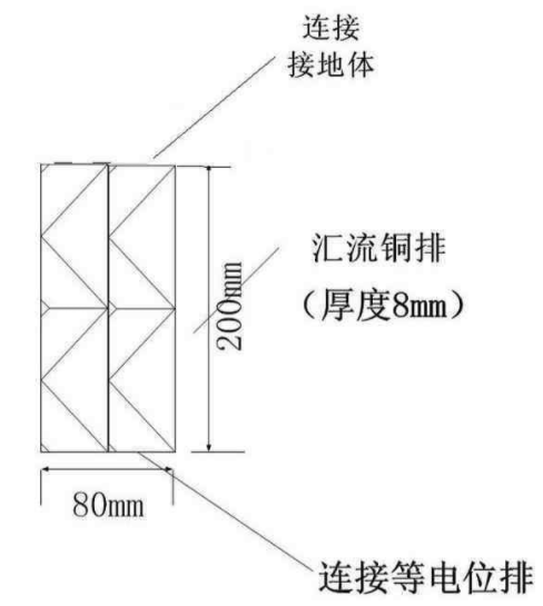 在機(jī)房設(shè)置兩塊匯流排,規(guī)格為80×8mm銅板(兩塊銅板焊接),長20-30厘米,把匯流排與等電位均壓帶連接。通過等電位聯(lián)結(jié)導(dǎo)體將等電位聯(lián)結(jié)帶就近與接地匯流排、各類金屬管道、金屬線槽、建筑物金屬結(jié)構(gòu)等進(jìn)行連接。