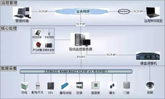 機(jī)房環(huán)境監(jiān)控系統(tǒng)是一個(gè)綜合利用計(jì)算機(jī)網(wǎng)絡(luò)技術(shù)、數(shù)據(jù)庫技術(shù)、通信技術(shù)、自動(dòng)控制技術(shù)、新型傳感技術(shù)等構(gòu)成的計(jì)算機(jī)網(wǎng)絡(luò),提供的一種以計(jì)算機(jī)技術(shù)為基礎(chǔ)、基于集中管理監(jiān)控模式的自動(dòng)化、智能化和高效率的技術(shù)手段,系統(tǒng)監(jiān)控對象主要是機(jī)房動(dòng)力和環(huán)境設(shè)備等設(shè)備(如:配電、UPS、空調(diào)、溫濕度、漏水、煙霧、視頻、門禁、消防系統(tǒng)等)。
