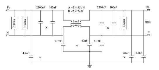 圖3是一個在實際的UPS中廣泛應(yīng)用的單相EMC濾波器的典型電路。