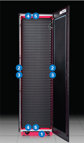 故障區(qū) 2 和 3:19 英寸機柜前端垂直導(dǎo)軌的左右兩側(cè)(機柜內(nèi)部)