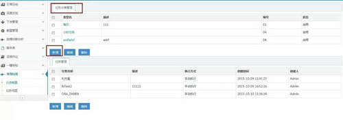 首先,系統(tǒng)管理員先進(jìn)行任務(wù)配置,系統(tǒng)管理在任務(wù)配置頁(yè)面,進(jìn)行任務(wù)分類(lèi)與任務(wù)的配置。使用日常任務(wù)之前,需要先配置在相應(yīng)的任務(wù)分類(lèi)下配置任務(wù),才能使用。