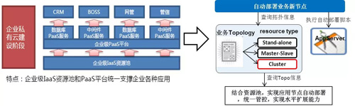 上述是在組織架構(gòu)上適應(yīng)云服務(wù)的運(yùn)維,在技術(shù)上,我們公司積極推進(jìn)企業(yè)級(jí)資源池、第三代CRM的IAAS和PAA融合架構(gòu)建設(shè),實(shí)現(xiàn)應(yīng)用節(jié)點(diǎn)容量通過(guò)服務(wù)方式自動(dòng)擴(kuò)展,做到集中統(tǒng)一管控,深入運(yùn)維提升核心掌控能力,目前本項(xiàng)目正在建設(shè)中,如下圖所示: