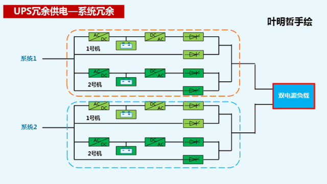 常見的是雙總線系統(tǒng),系統(tǒng)內(nèi)部設(shè)備獨(dú)立,配電系統(tǒng)獨(dú)立,是目前業(yè)內(nèi)公認(rèn)的最可靠及可行的工作方式,冗余方式發(fā)揮作用前提是負(fù)載設(shè)備配備雙電源模塊,且兩個(gè)電源模塊式負(fù)載分擔(dān)模式工作,該方法也被普遍采用。